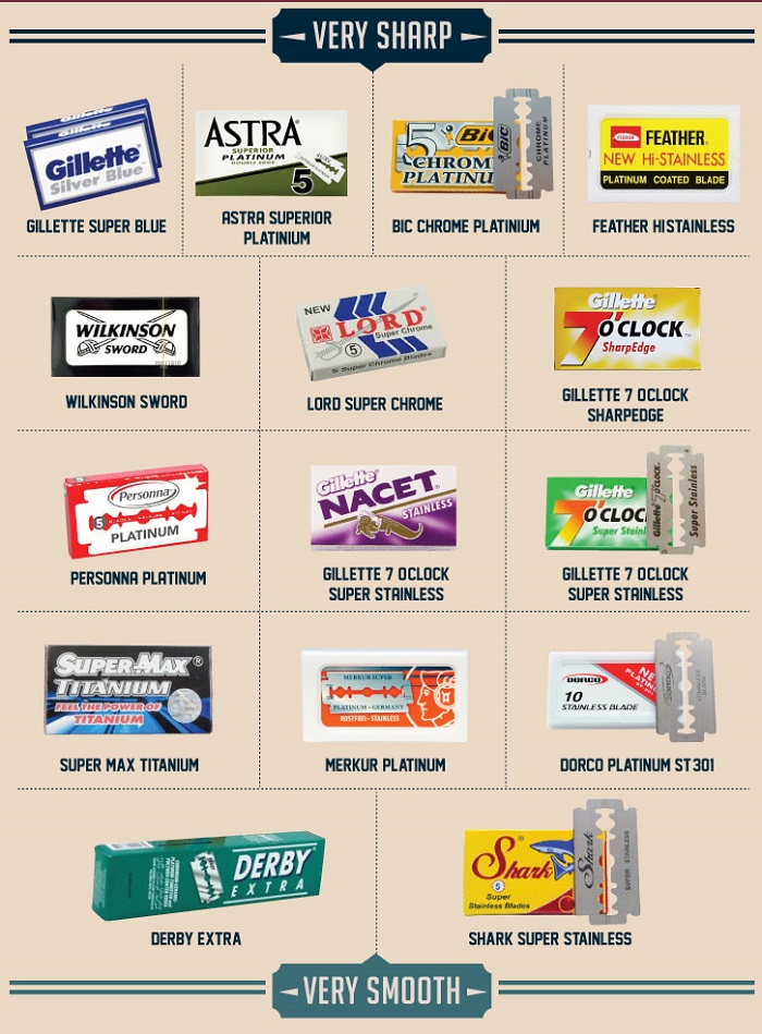 مارک های بسیاری در بین تیغ ای اصلاح صورت وجود دارند که در ادامه لیستی از بهترین مارک تیغ اصلاح صورت را برایتان آماده کرده ایم. بهترین مارک تیغ اصلاح صورت به ترتیب زیر از تیز ترین به کند ترین لیست شده اند. تیزترین تیغ ها مناسب افراد با ریش متراکم و پر پشت و زبر است اما تیغ های کندتر برای افراد با پوست حساس یا موهای نازک راحت تر و مناسب تر است.